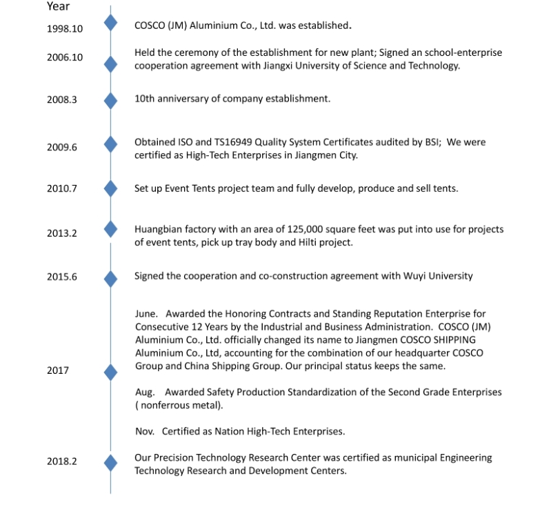 Found in 1998, Jiangmen COSCO Shipping Aluminum Co., Ltd. is a fully-owned subsidiary of China COSCO Shipping Group Co., LTD., headquartered in Shanghai. In 2017, she was awarded the National High-Tech Enterprises.